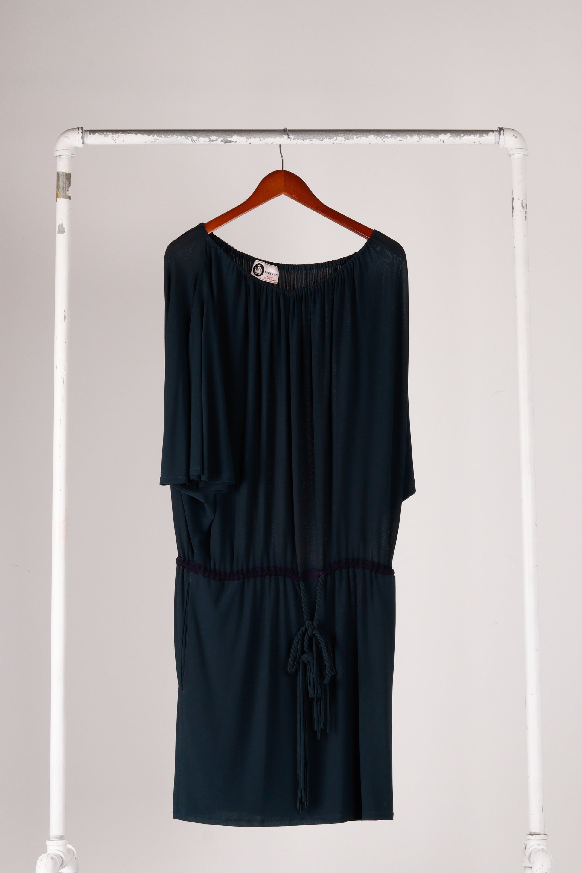 90's Lanvin 'Drop Waist' Maxi Dress Navy